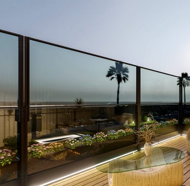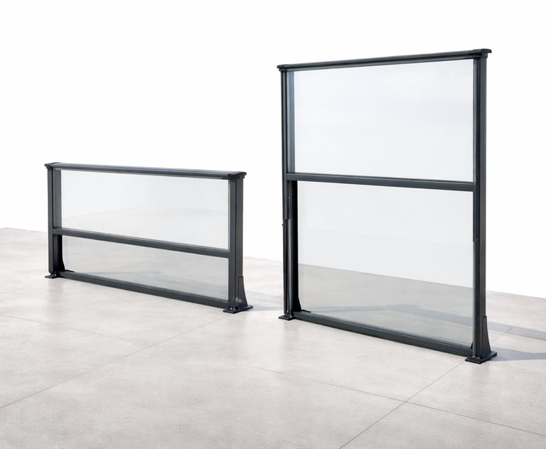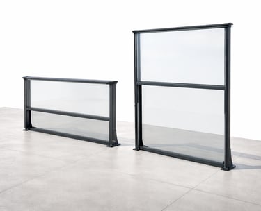Desenvolvemos soluções de guardas corta-vento em vidro adaptadas às necessidades de cada espaço.