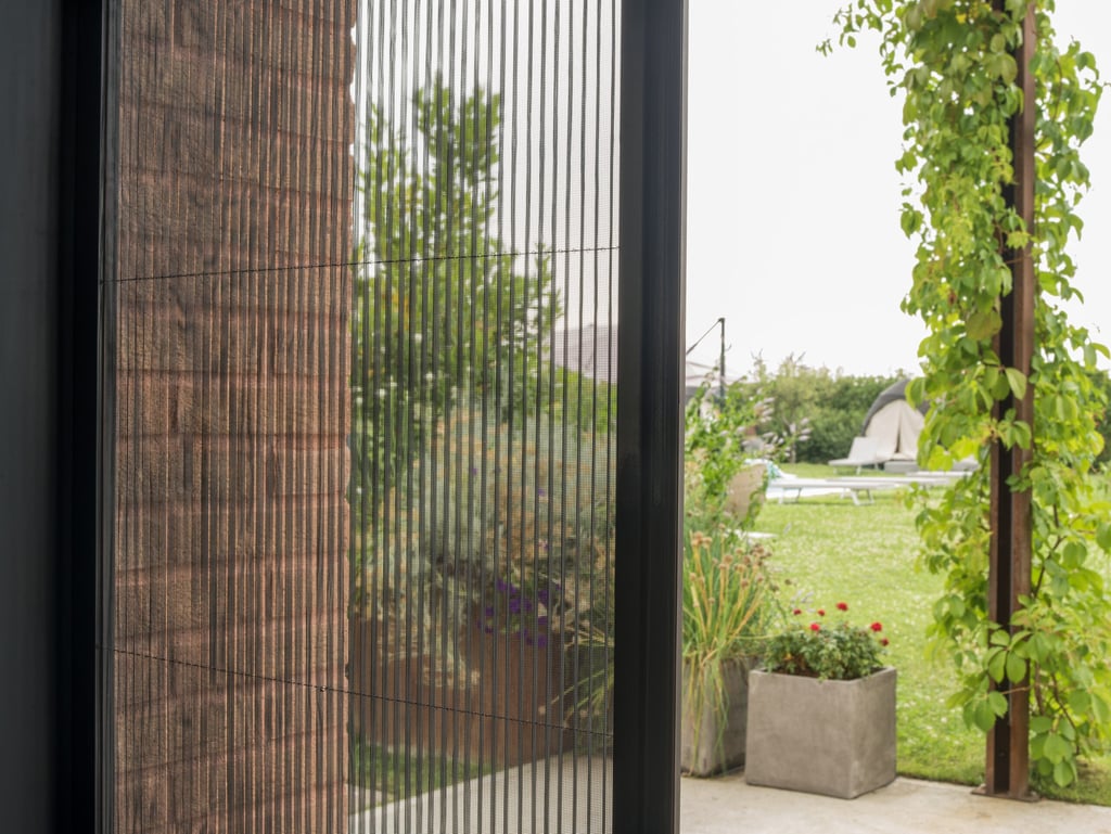 O sistema plissado em estilo acordeão desliza suavemente, ocupa pouco espaço quando recolhido e garante operação simples e elegante. Os perfis em alumínio robustos e acabamentos personalizáveis acrescentam conforto e exclusividade ao seu dia a dia.